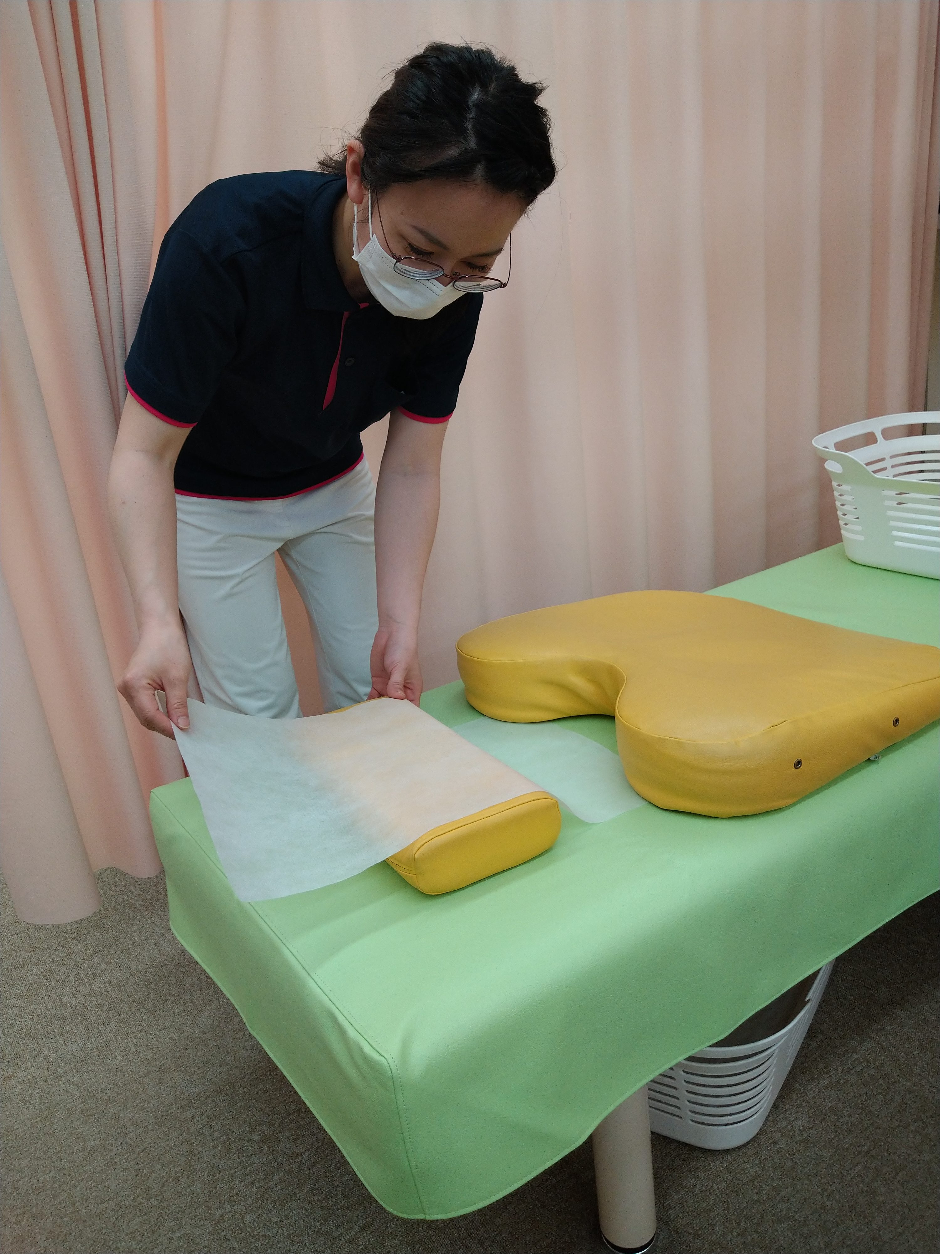 施術マクラには使い捨てフェイスペーパーを使用しています。