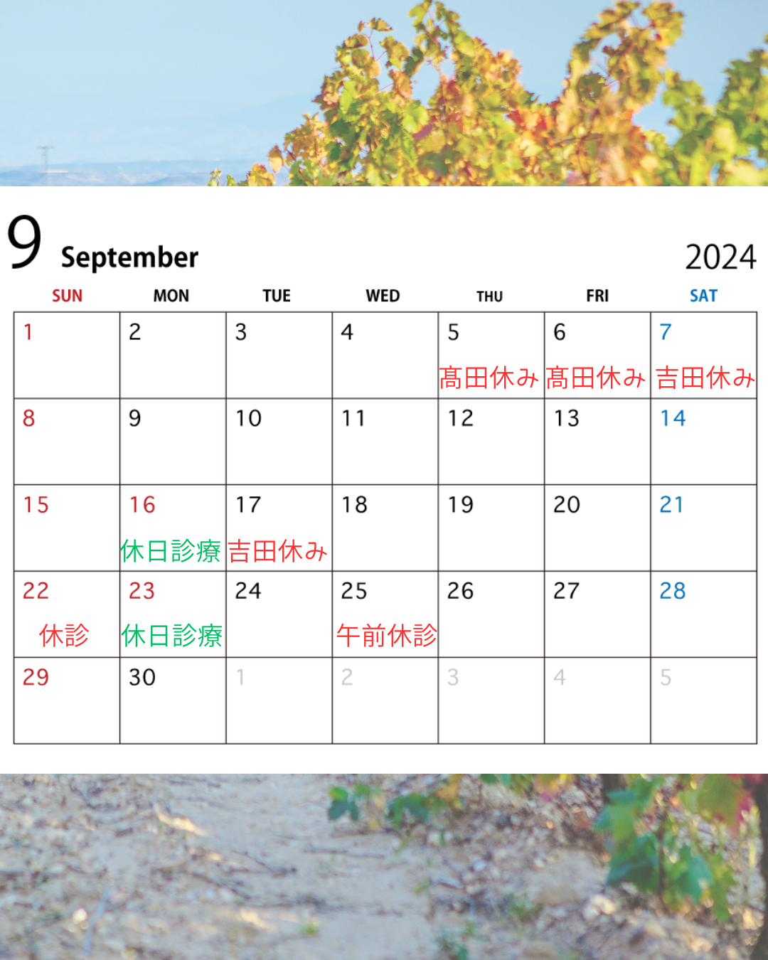 16日(月)、23日(月)は祝日ですが、髙田先生が診療しております。
